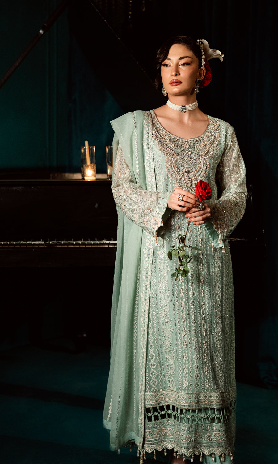 Embroidered Chiffon Sleeves with Embellish Organza Patch