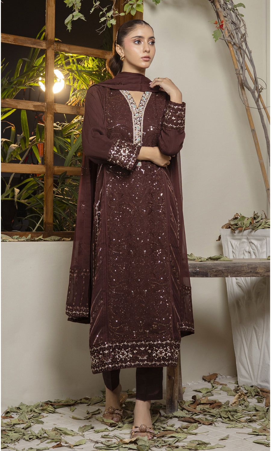 Details: This brown color has timeless beauty. The ensemble comprises a delicate yet lavishly embroidered dupatta of matching to make your wardrobe more elegance.