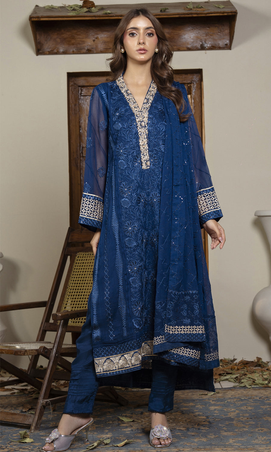 Details: This Royal blue color has timeless beauty. The ensemble comprises a delicate yet lavishly embroidered dupatta of matching to make your wardrobe more elegance.